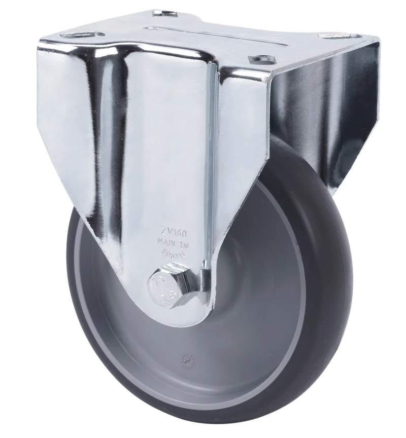 Roulettes en caoutchouc gris injecté à noyau en polypropylène. Indiquées spécialement pour supporter des charges jusqu'à 180 kg.