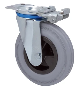 Roulettes en caoutchouc gris naturel. Indiquées spécialement pour supporter des charges jusqu'à 215 kg.