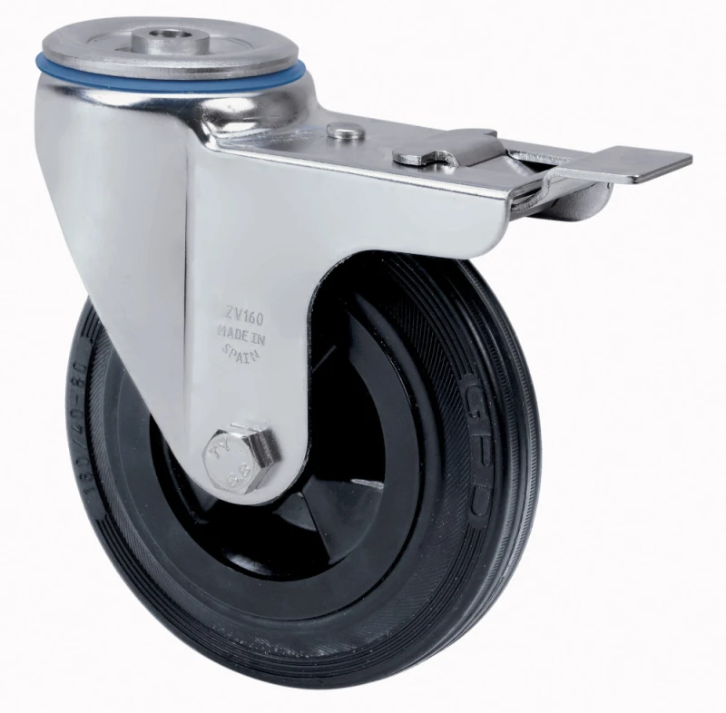 Roulettes en caoutchouc noir naturel. Indiquées spécialement pour supporter des charges jusqu'à 215 Kg.