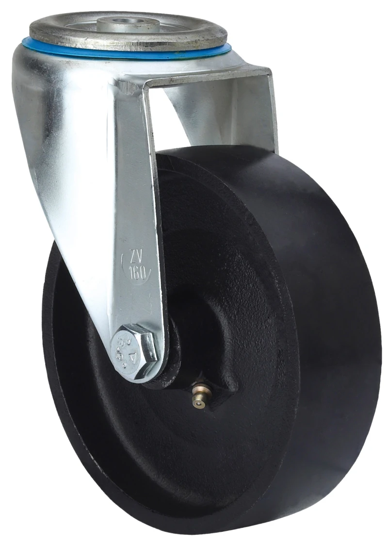 Roulettes en acier, indiquées spécialement pour supporter des charges jusqu'à 400 kg. Appliquées principalement dans les secteurs industriels, minière, automobile, alimentaire, agricole.