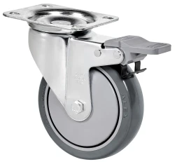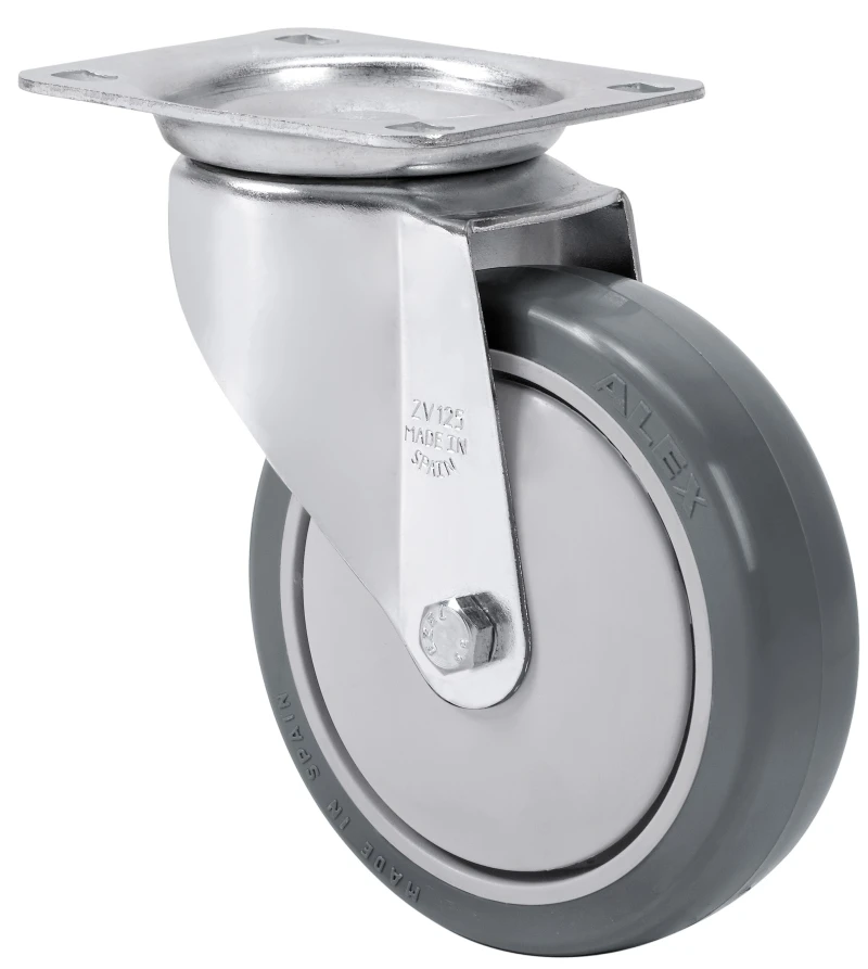 Roues en caouctchouc gris injecté. Particulièrement adaptée pour supporter des charges allant jusqu'à 125 Kgs.