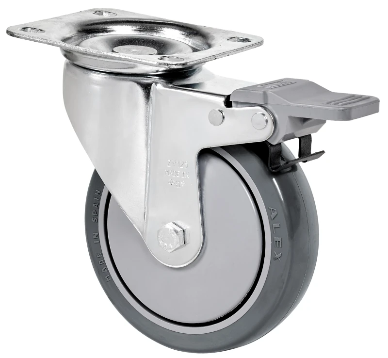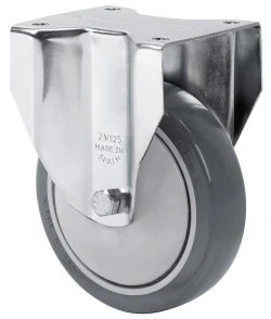Roues en caouctchouc gris injecté. Particulièrement adaptée pour supporter des charges allant jusqu'à 125 Kgs.