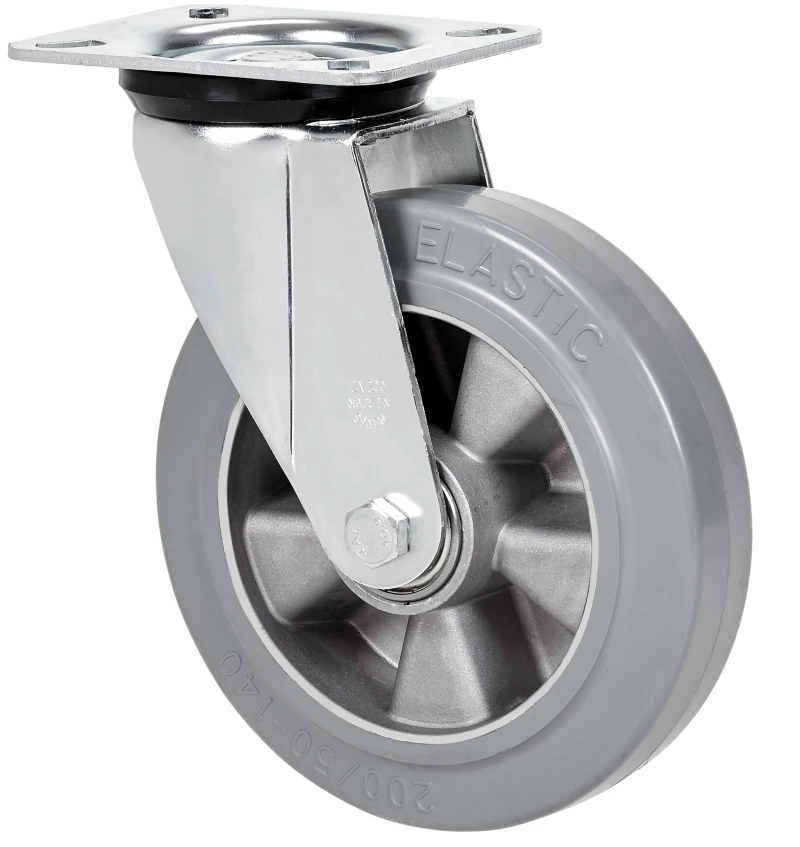 Roue avec corps en aluminium et bandage en caoutchouc élastique gris d'une dureté de 70º Shore A.